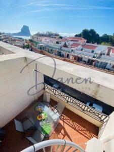 Een van de grootste troeven van deze woning is de indrukwekkende buitenruimte: een ruim terras met een trap die toegang geeft tot een prachtig privé solarium van 90 m², waar u kunt genieten van panoramisch uitzicht op zee en de iconische Peñón de Ifach.