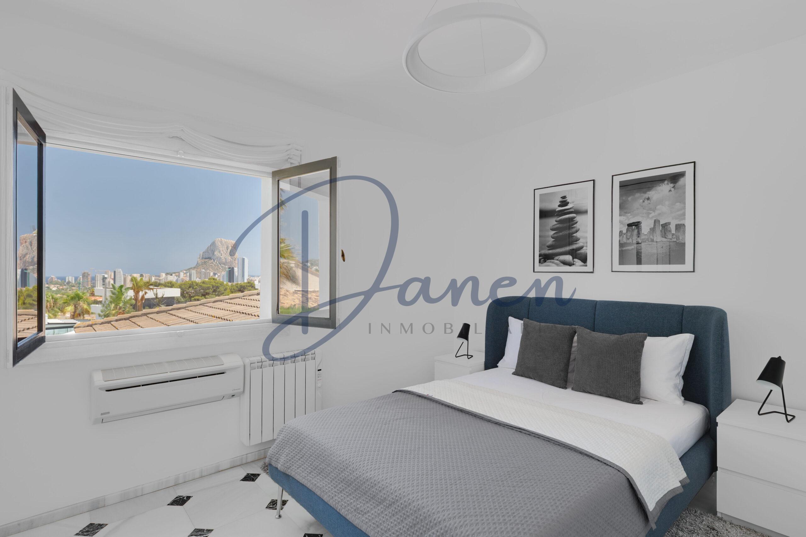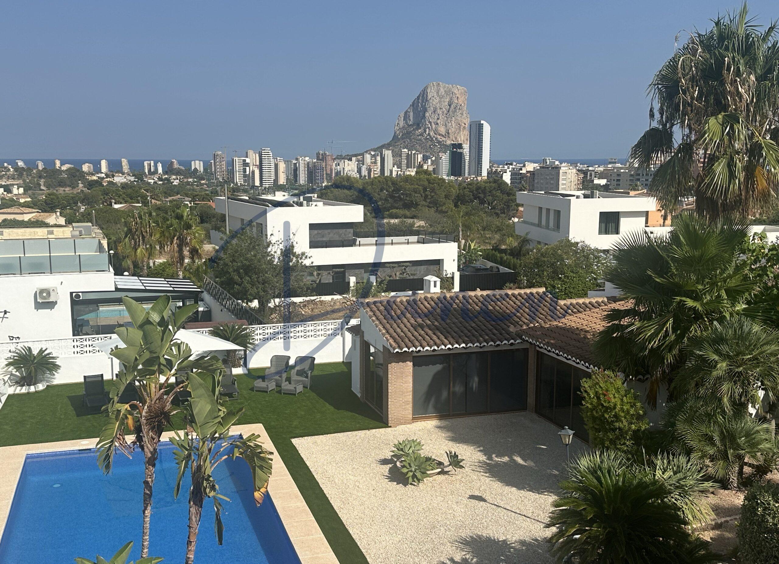 Desde todas las estancias se disfrutan vistas abiertas al Peñón de Ifach. La propiedad se encuentra en una calle sin salida, lo que garantiza privacidad absoluta y ausencia de tráfico. Se entrega con mobiliario nuevo incluido, aire acondicionado en todas las habitaciones, calefacción y agua caliente eléctricas, sistema de alarma y videovigilancia. Además, cuenta con un garaje amplio y una zona cubierta con capacidad para dos vehículos.